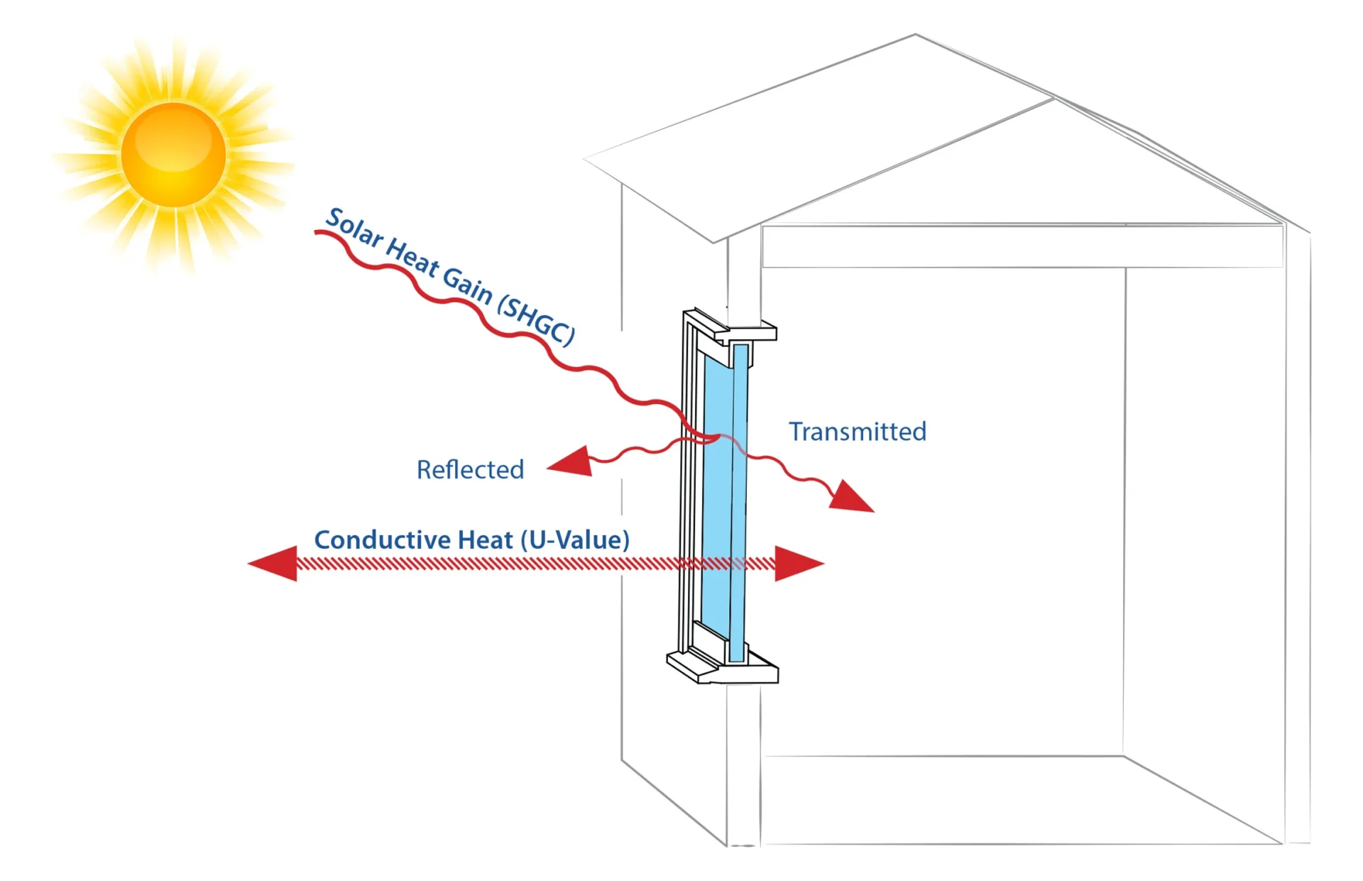 - Solar Heat Gain Coefficient rates the fraction of solar radiation that penetrates the window. The lower the SHGC number, the less solar heat the window allows.